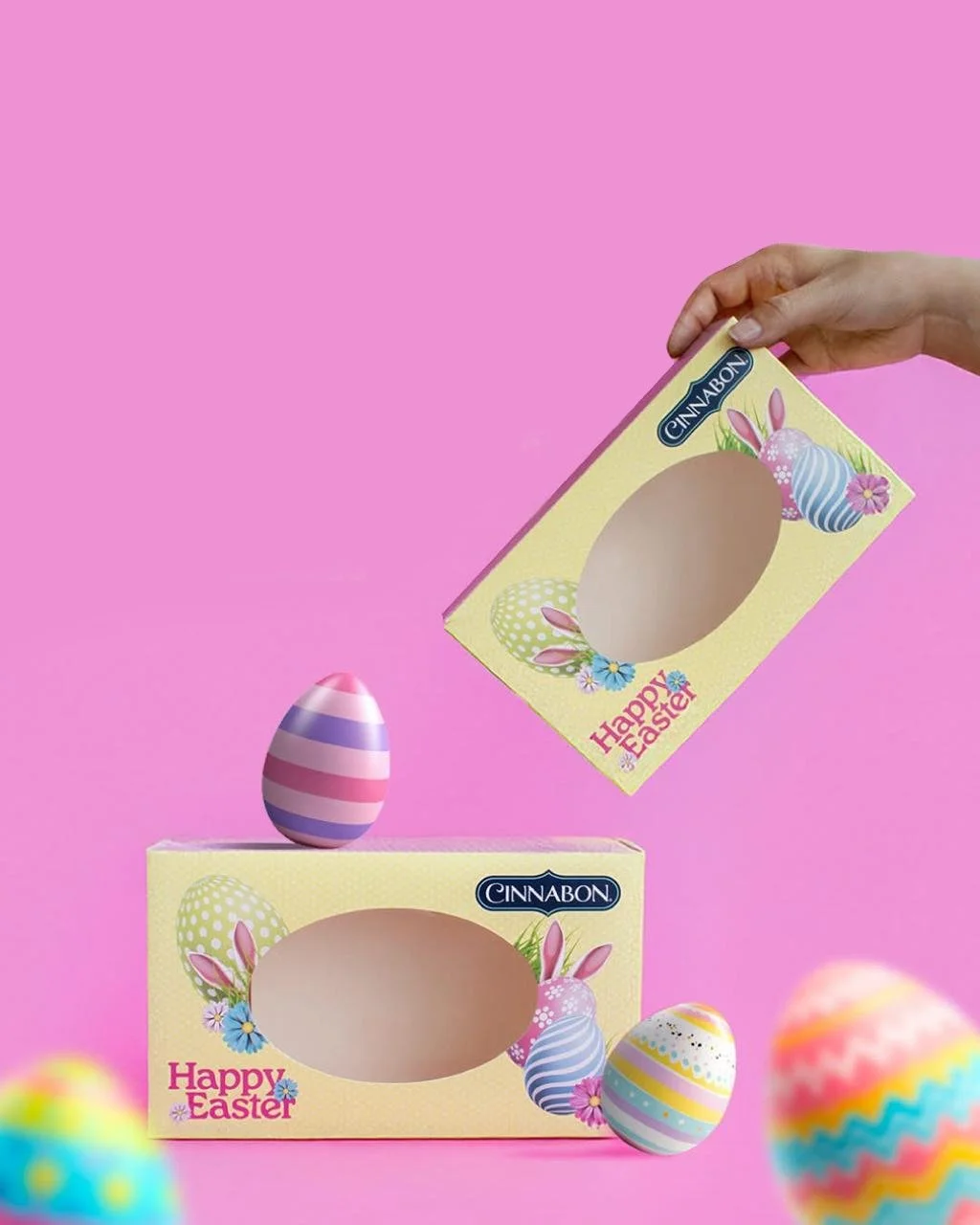 Ediciones Limitadas (In-House): Para impulsar las ventas en momentos clave, trabajamos en conjunto con el departamento de marketing de Cinnabon en el diseño de empaques de edición limitada para ocasiones especiales como Navidad y Pascua. Estos empaques se imprimen a full color y son diseñados internamente por nuestro equipo, lo que demuestra la capacidad de OMEGA para combinar el cumplimiento global con la agilidad y creatividad local.